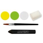 Contém: 3 boiões 2 gr pinturas, 1 lápis, 1 pincel e 1 esponja