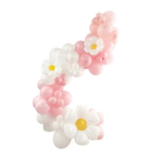 Inclui: 2 balões foil flor 50 x 40 cm, 1 balão foil flor 72 x 72 cm, 60 balões látex 25 cm ( brancos, rosa e rosa bebe), 27 balões látex 12.5 cm ( brancos, rosa e rosa bebe), 1 fita 5 mt, 1 rolo pontos adesivos e 1 fita cetim branca 10 mt