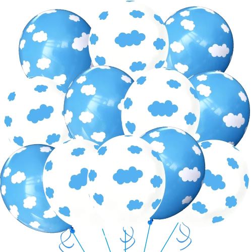 Quantidade: 3 balões azuis 30 cm, 2 balões brancos 30 cm