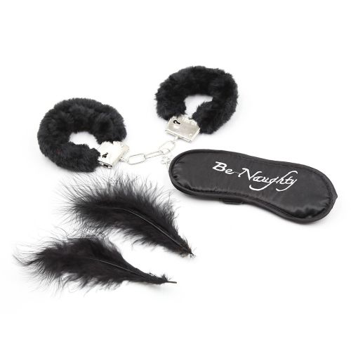 Inclui: 1 algemas, 2 penas e uma venda