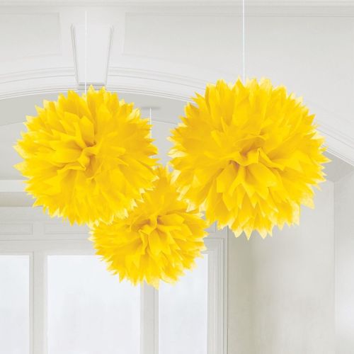 Início Aniversários Decoração Rosetas/Fluffys/Lanternas Fluffys Bolas Papel Amarelas