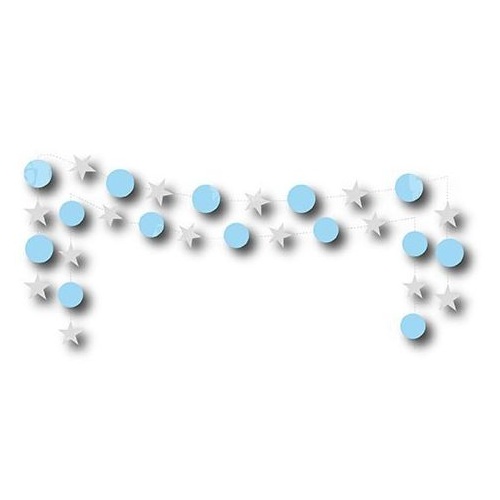 Início Aniversários Decoração Grinaldas / Bandeiras Grinalda Bolas e Estrelas Azul / Prata