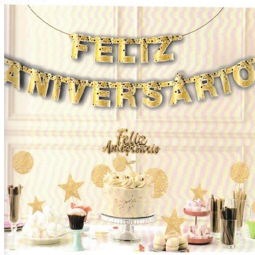Início Aniversários Decoração Grinaldas / Bandeiras Grinalda Feliz Aniversário Dourada