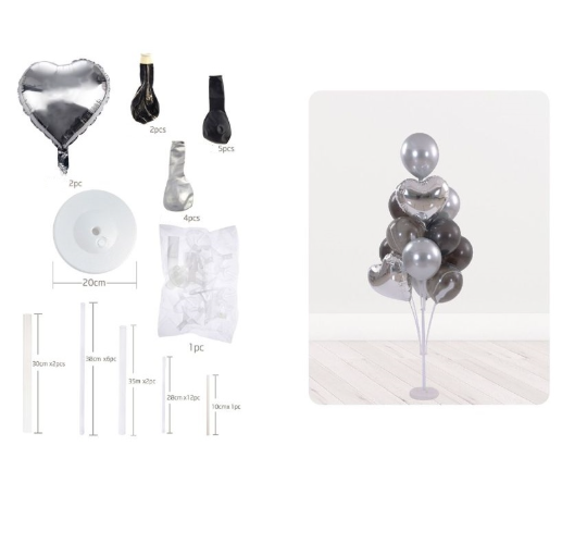 Inclui: 1 base com expositor balões, suportes para aplicar, 2 balão foil coração, 11 balões latex