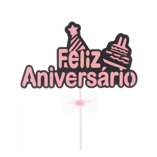 Início Aniversários Velas e Topos Bolo Topo Bolo Feliz Aniversário Rosa