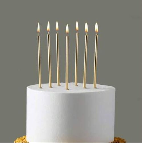 Início Aniversários Velas e Topos Bolo Velas Douradas 12 unidades