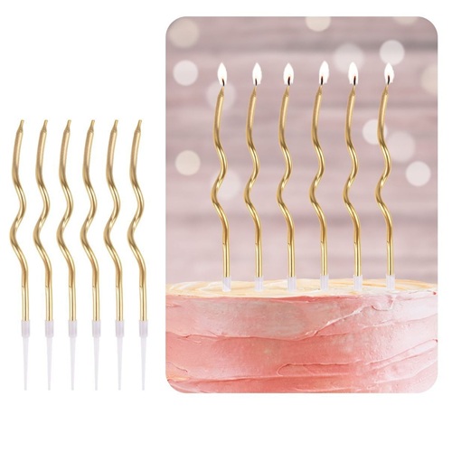 Início Aniversários Velas e Topos Bolo Velas Espiral Douradas