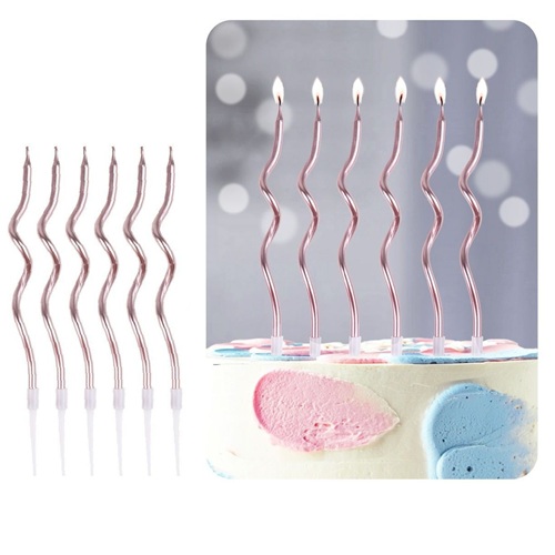 Início Aniversários Velas e Topos Bolo Velas Espiral Rosa Gold